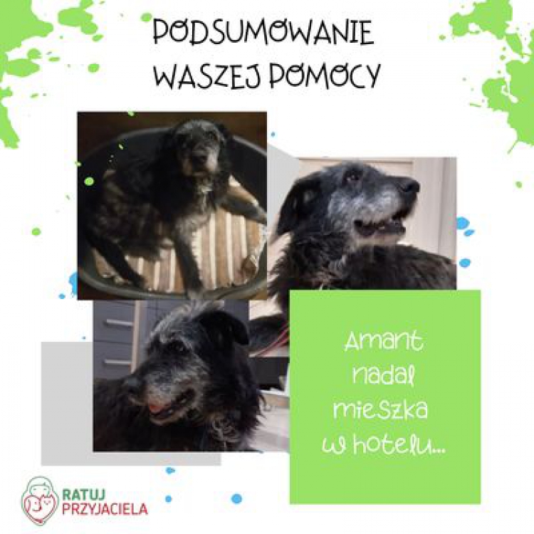 Amant - cały czas mieszka w hotelu, dobrze się tam czuje. Dostał miejsce w domu, więc jest szczęśliwy. Cały czas jest zadłużony... Jeśli ktoś chciałby pomóc, to Amant jest podopiecznym grupy Tylko Przyjaciele Zwierząt.